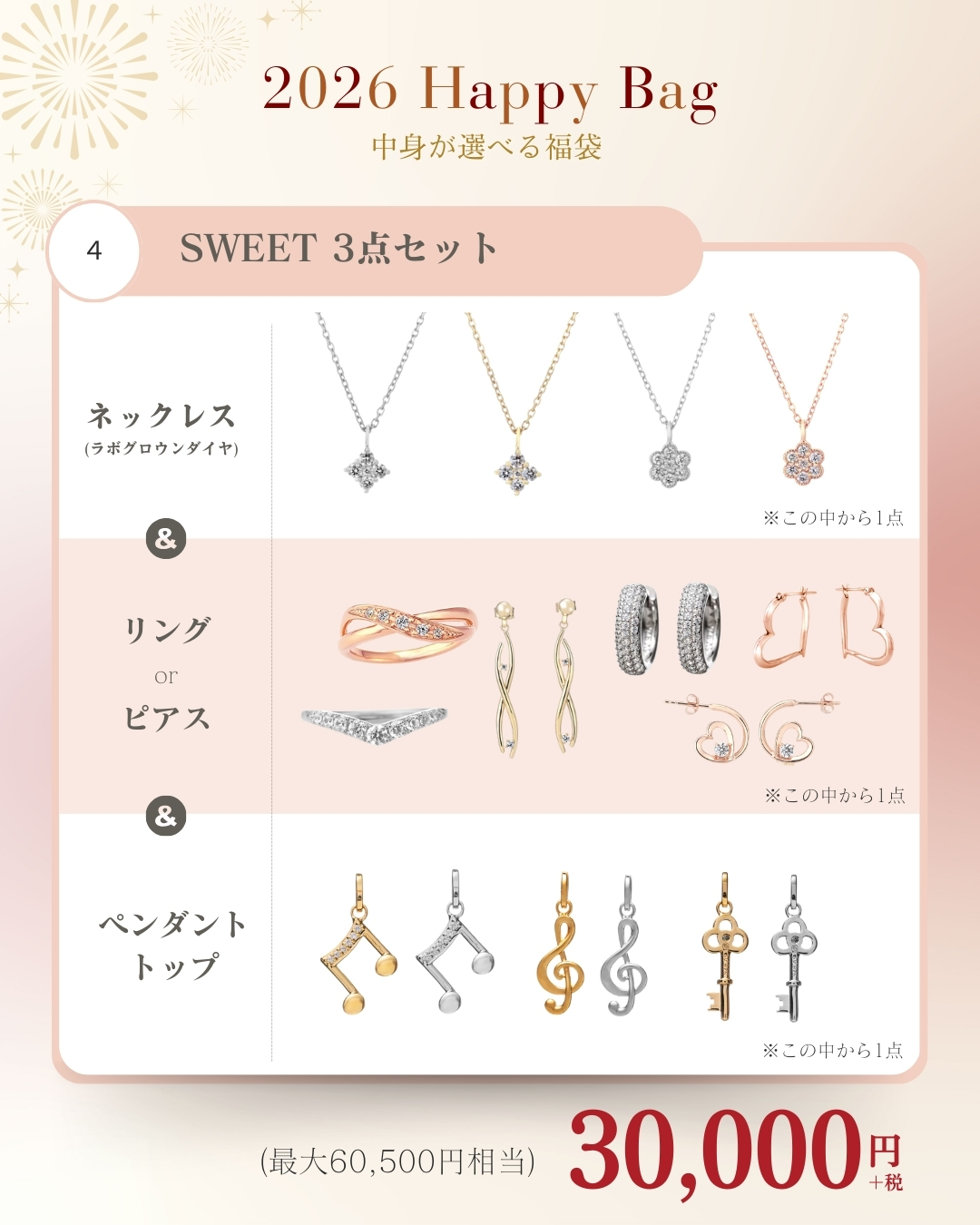今年のh&dジュエリーのHappy Bagは、4種類のラインナップで登場!
